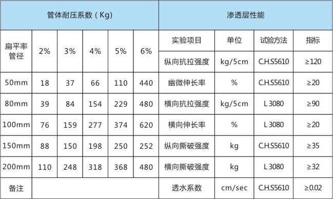 軟式透(tou)(tou)水管(guan)是一(yi)種(zhong)具(ju)(ju)有(you)倒(dao)濾鏡(排(pai))水作用(yong)(yong)的(de)(de)(de)新型管(guan)材(cai),它(ta)克服了其(qi)(qi)他排(pai)水管(guan)材(cai)的(de)(de)(de)諸(zhu)多弊 病(bing),因(yin)其(qi)(qi)生(sheng)產獨(du)特的(de)(de)(de)設(she)計(ji)原理(li)和構成(cheng)材(cai)料的(de)(de)(de)優(you)良性(xing)能,它(ta)排(pai)、滲(shen)水效果(guo)(guo)強(qiang),利用(yong)(yong)”毛細(xi)"現象和”虹(hong) 吸”原理(li)、集吸水、透(tou)(tou)水、排(pai)水為一(yi)氣呵成(cheng),具(ju)(ju)有(you)滿足(zu)工程(cheng)設(she)計(ji)要(yao)(yao)求的(de)(de)(de)耐壓能力及透(tou)(tou)水性(xing)和反(fan)濾作用(yong)(yong)。不(bu)因(yin)地(di)質(zhi)、地(di)理(li)溫度(du)變化而產生(sheng)斷裂,并可達到排(pai)放(fang)凈水的(de)(de)(de)效果(guo)(guo),不(bu)會對(dui)環境造成(cheng)二次污 染,屬于環保產品.因(yin)其(qi)(qi)施工簡(jian)便,無(wu)接頭,對(dui)地(di)質(zhi)、地(di)形無(wu)特殊(shu)要(yao)(yao)求,任何(he)需(xu)要(yao)(yao)用(yong)(yong)暗排(pai)水的(de)(de)(de)地(di) 方都可以隨心(xin)所欲地(di)使用(yong)(yong)。