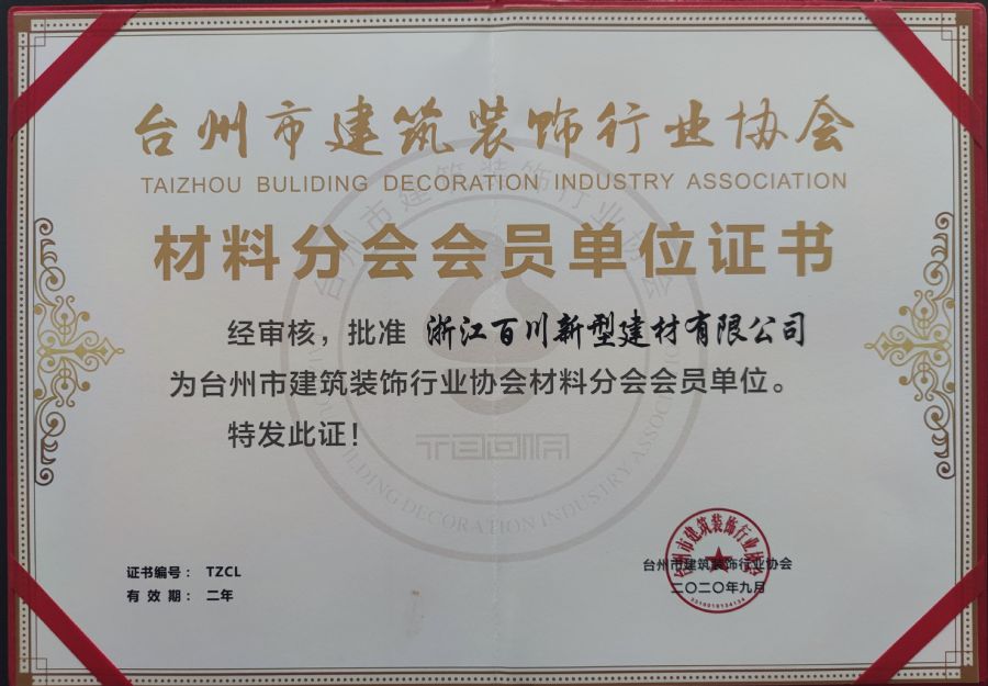 臺州市建筑裝飾行業協會證書